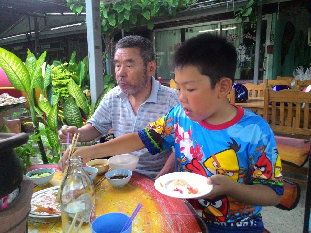 パパさんが気に入る象の柄があったので値段をきくと100バーツという。