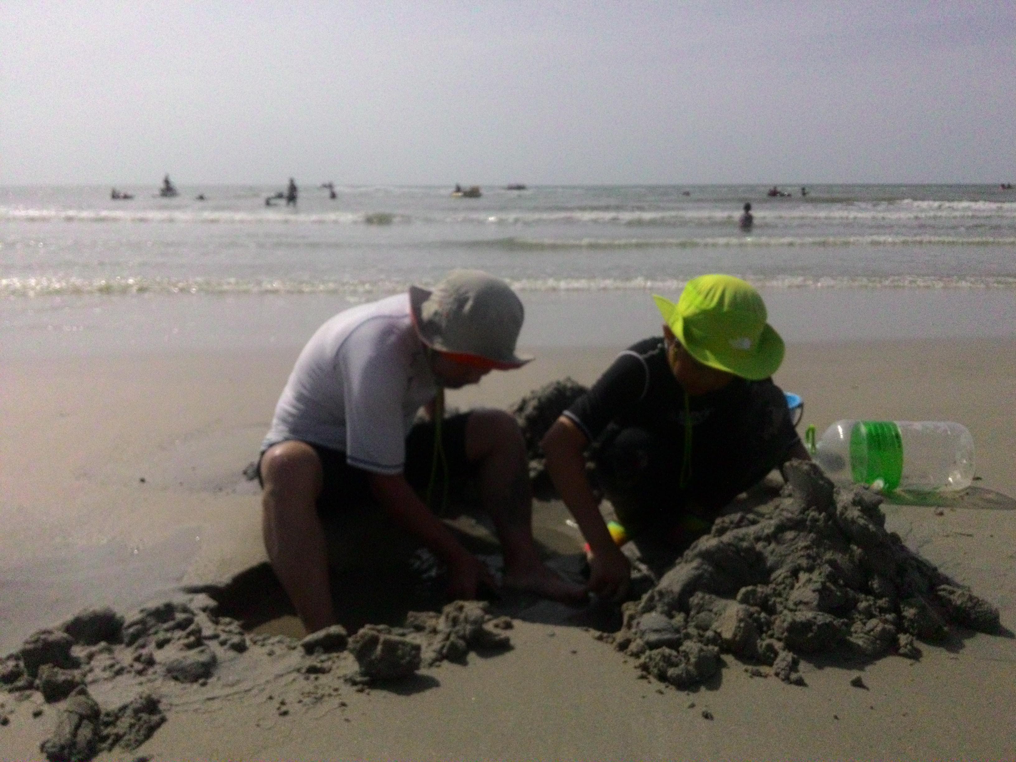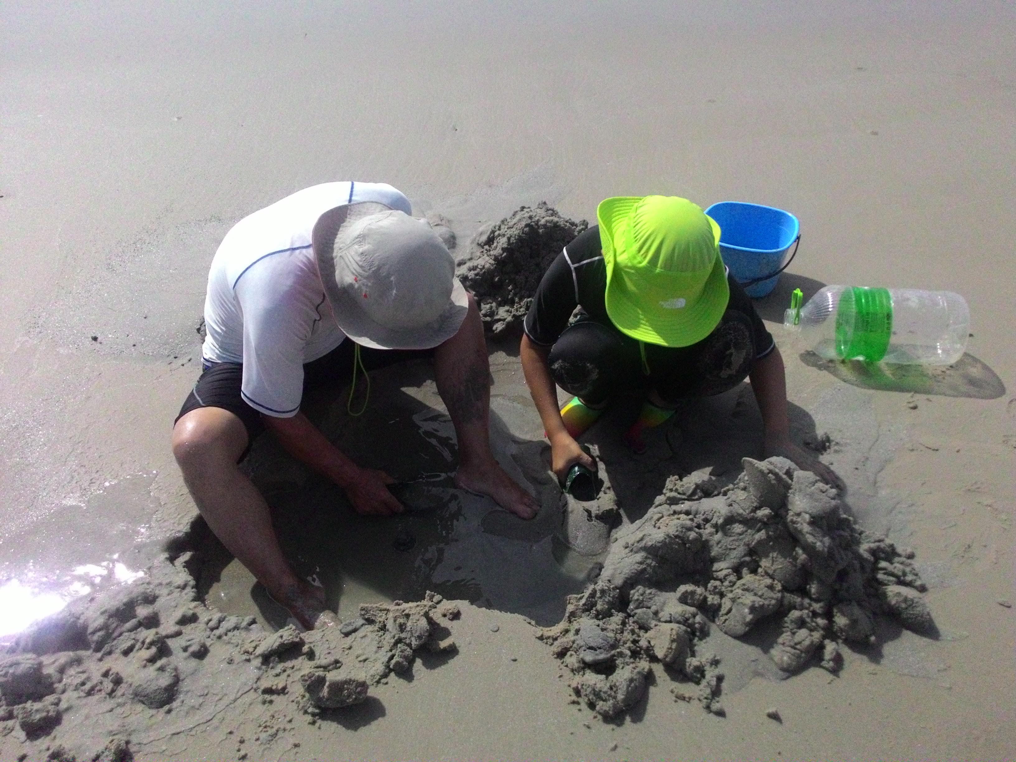 おじいちゃんとたろさんがシャコほりにせいをだすなか、