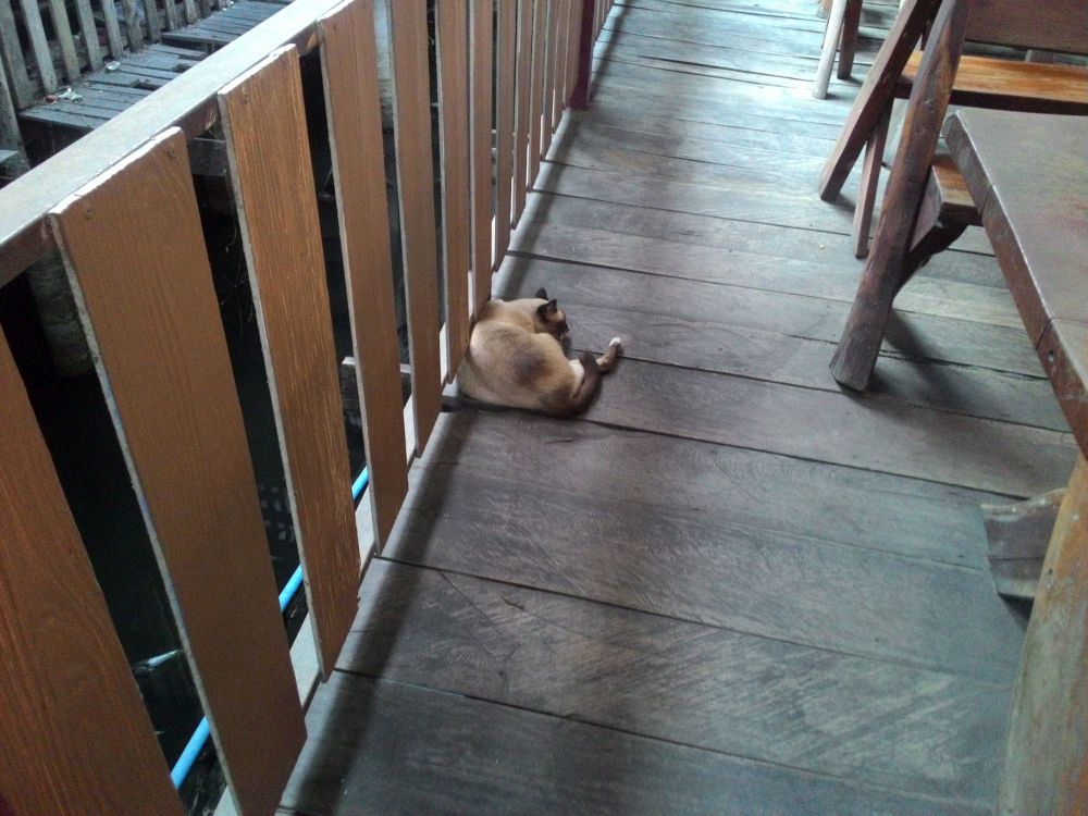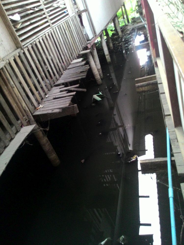 この店はきたない湿地というか池の上に板をかけてつくってあり