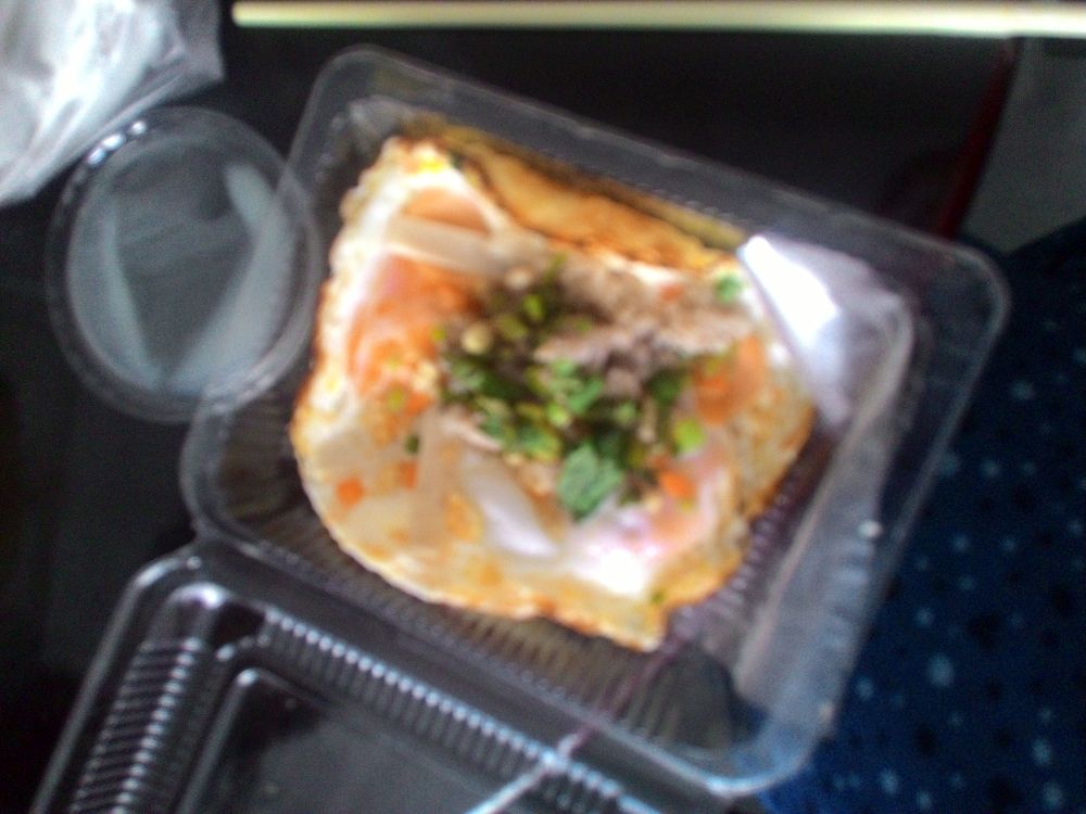 帰りに虹色のひさしのおかずやのチキンフライの店でカオニャオだけ買った。