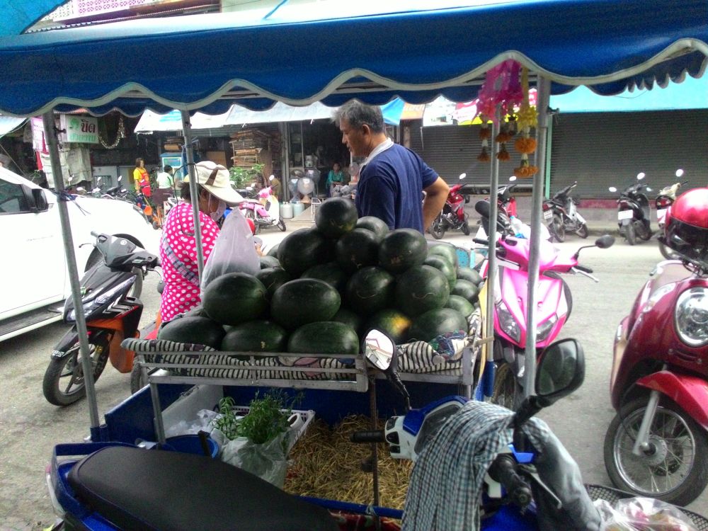 さて、バイク三台に分乗してナイトマーケットに出発だ。