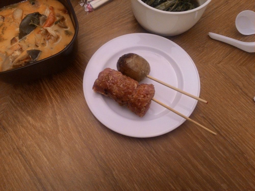 いつも買う豚肉串焼きと、袋に入ってるのはカオニャオ